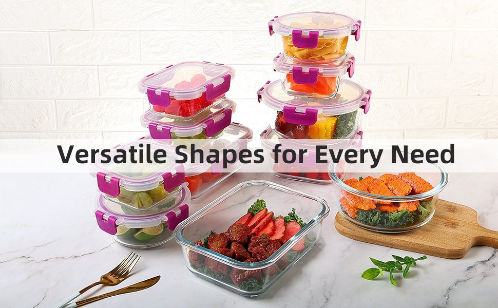 Nuestros recipientes de almacenamiento de vidrio están hechos de vidrio de borosilicato de alta calidad, que son aptos para microondas, puedes utilizarlos para almacenamiento en congelador, microondas (no las tapas) y lavavajillas.